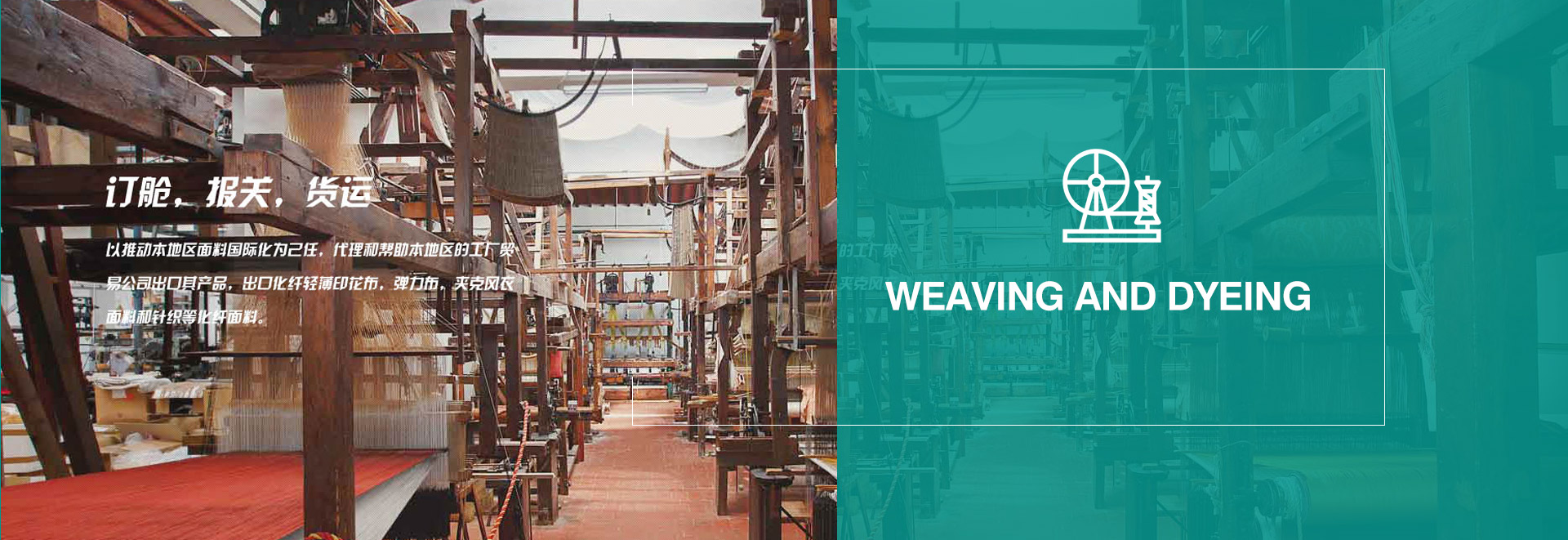 本公司以推動本地區面料國際化為己任,代理和幫助本地區的工廠貿易公 司出口其產品,提供訂艙,報關,貨運等一條龍服務